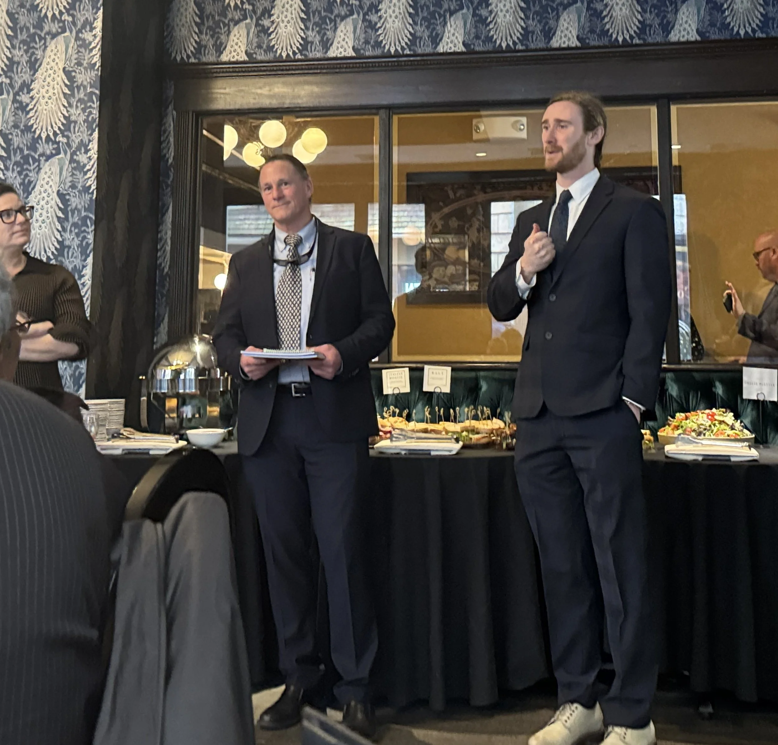 Pictured is Dennis on the left, and attorney Callum LaFrance of the Environmental Justice Action Network speaking on the right.